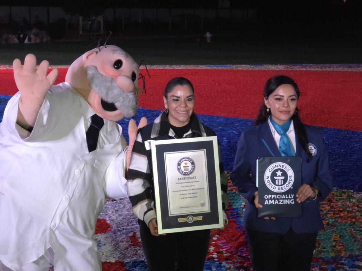 El CEO de Farmacias Similares y presidente del Grupo por un País Mejor, Víctor González Herrera, hizo historia con la Fundación Dr. Simi al obtener el récord Guinness del mural más grande del mundo hecho con tapas de plástico.